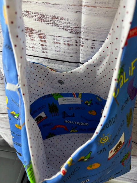 Made in USA, cutest mommy & me set of California bags with inside pockets and magnetic sanp button..